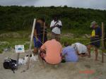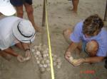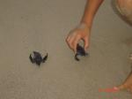 en la playa soní tuve junto a mi familia una d las experiencias mas extraordinaria. asistimos a un grupo de voluntarios en el nacimiento de los tinglares. estas personas ayudan o por lo menos tratan de ayudar a q las tortuguitas que logran nacer lleguen al mar y se sumerjan para comenzar su largo viaje . aunque casi imposible pues hay que ingeniarselas con las tijeretas pues las ven y ummmmm...caviar. las muy astutas te velan, salen de la nada y literalmente en tu cara te la roban de las manos. de hecho, como de 18 huevos que nacieron solo 3 lograron sumerjirse. la verdad que no esta nada facil sobrevivir pues no tan solo es salir del huevo, tienes que salir de un hueco como de 36" de profundidad y mas de 100' de la orilla, luego con suerte comienzan a flotar en lo que descubren q pueden sumerjirse y todo esto tiene que pasar sin que un pajaro o un pez te descubra. este evento surge a las 5:00 am desde mediados de junio hasta principios de agosto. envie unas fotos espero que les lleguen.